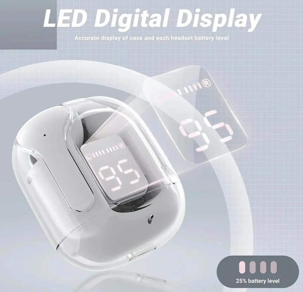 Transparent Design: Stand out from the crowd with the unique transparent design. The see-through casings not only add a touch of elegance but also allow you to witness the inner workings of these state-of-the-art earbuds.