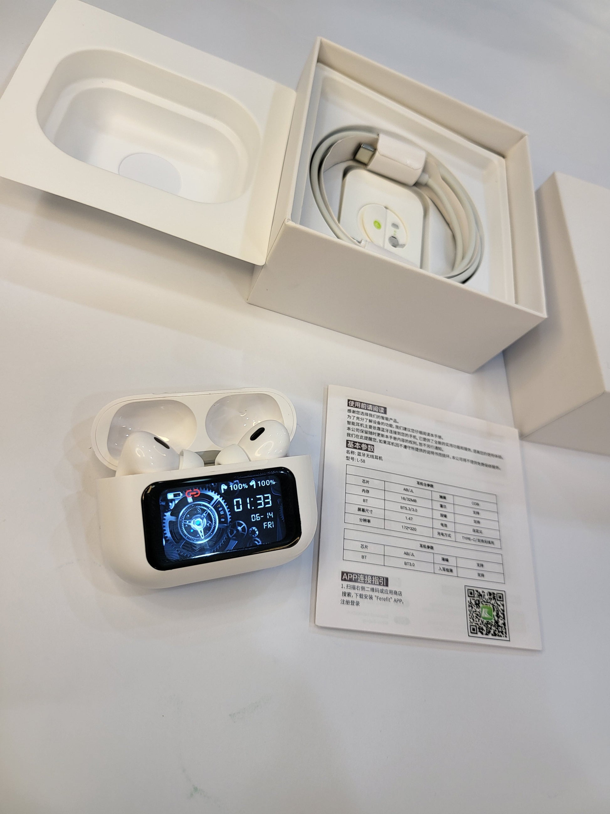 Designed for comfort and convenience, the A9 Pro Apple-Airpods come with a small, square charging box that fits perfectly in the palm of your hand. The earbuds include three sizes of silicone ear tips to fit different ear shapes, ensuring a secure and comfortable fit for prolonged use.