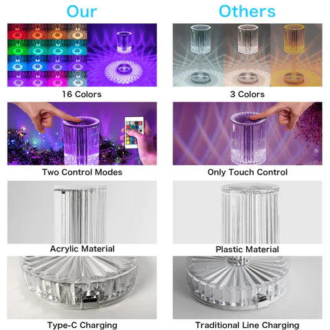 Diamond Table Lamp Touch and Remote Control 16 Color USB Rechargable