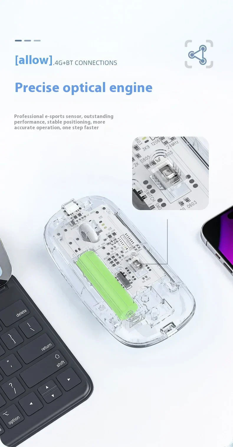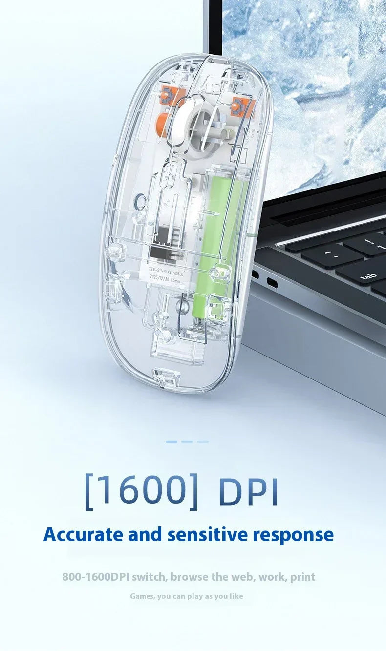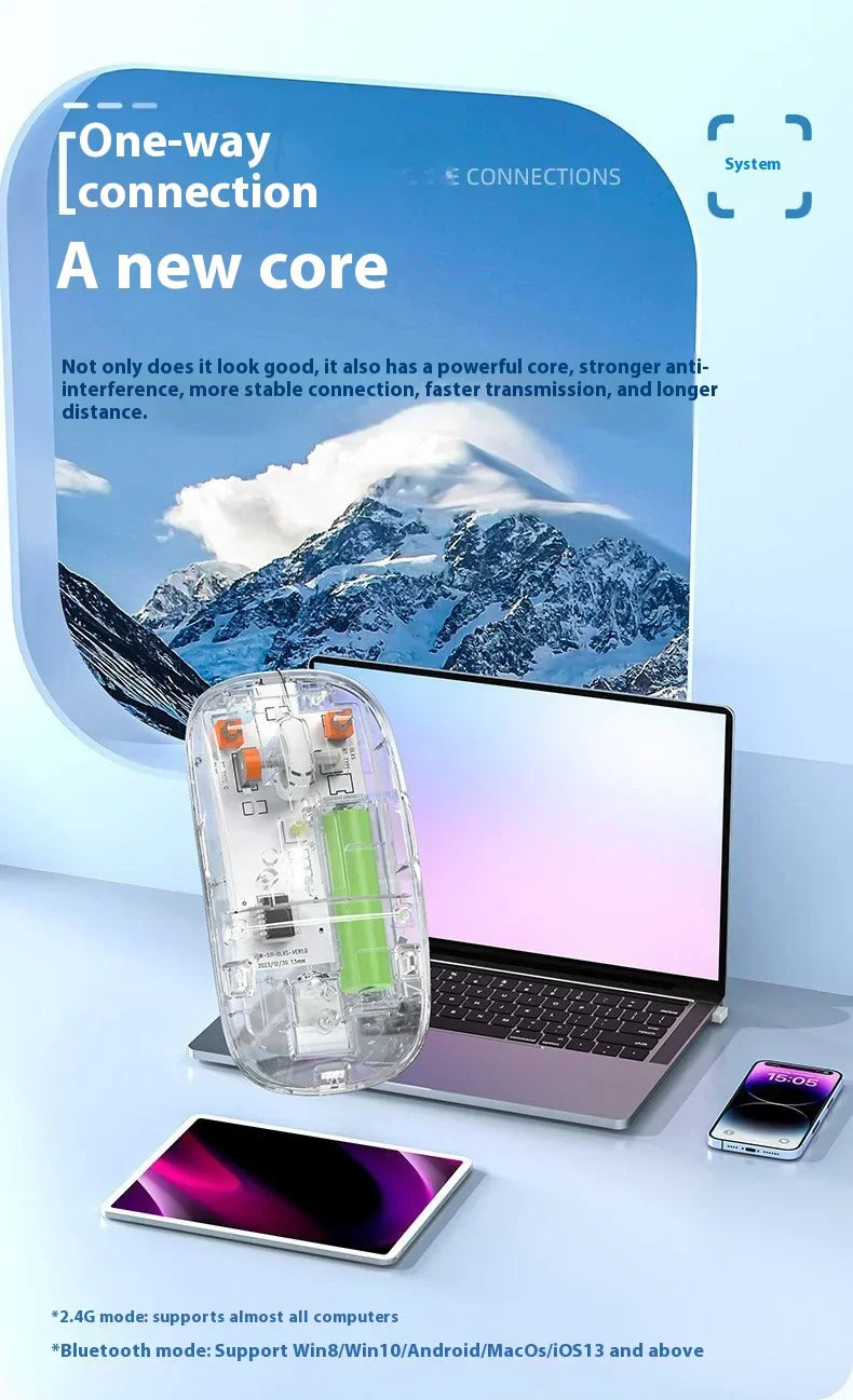 New Transparent Wireless + Bluetooth Dual-Mode Rechargeable Mouse