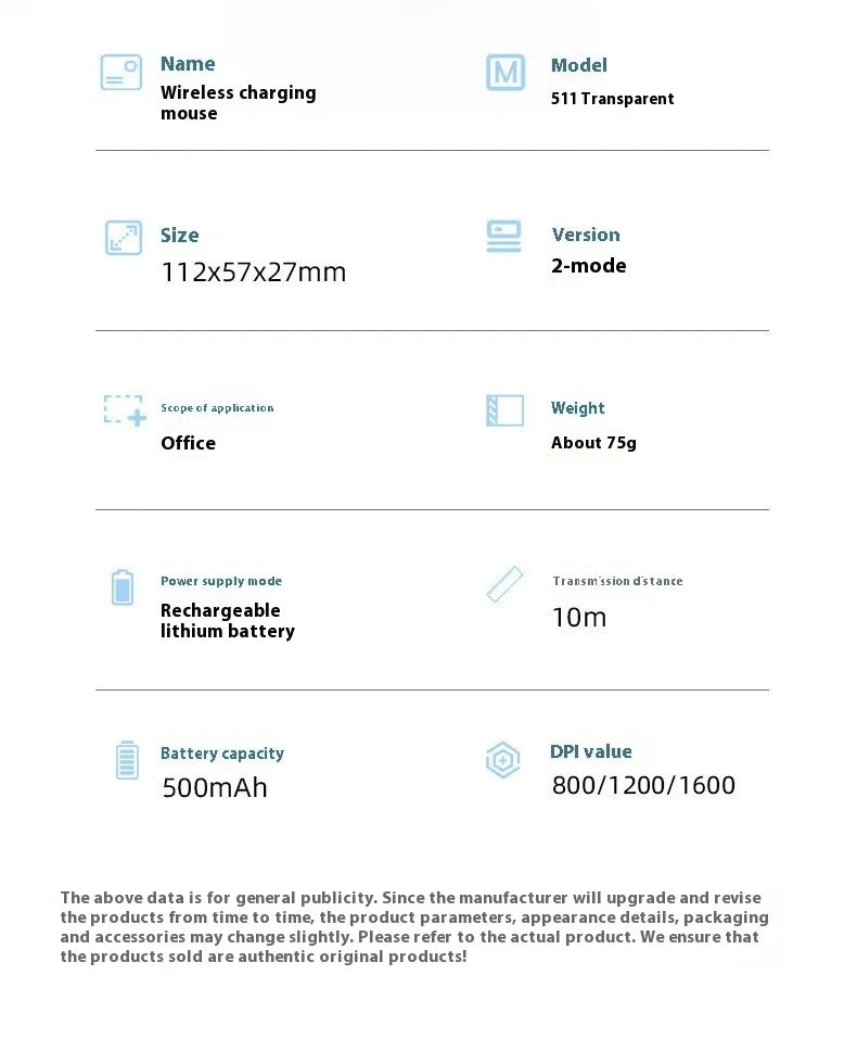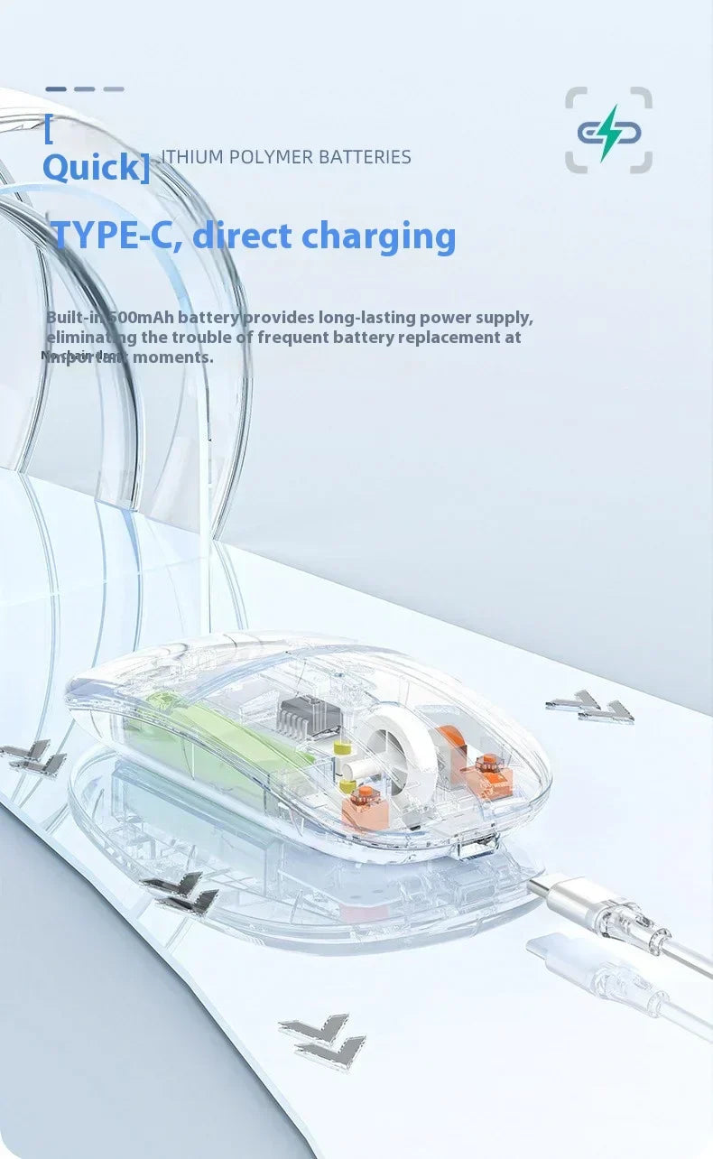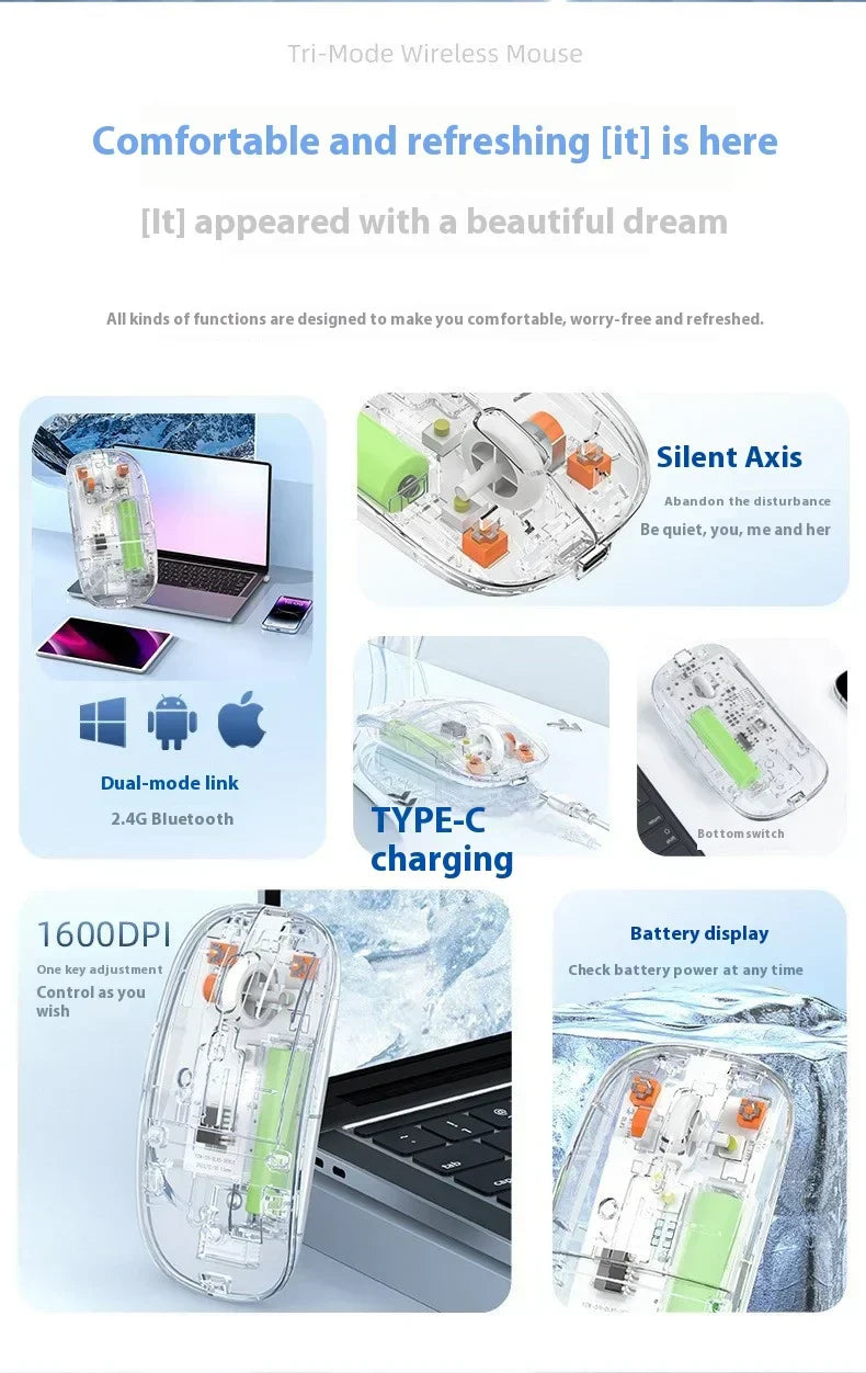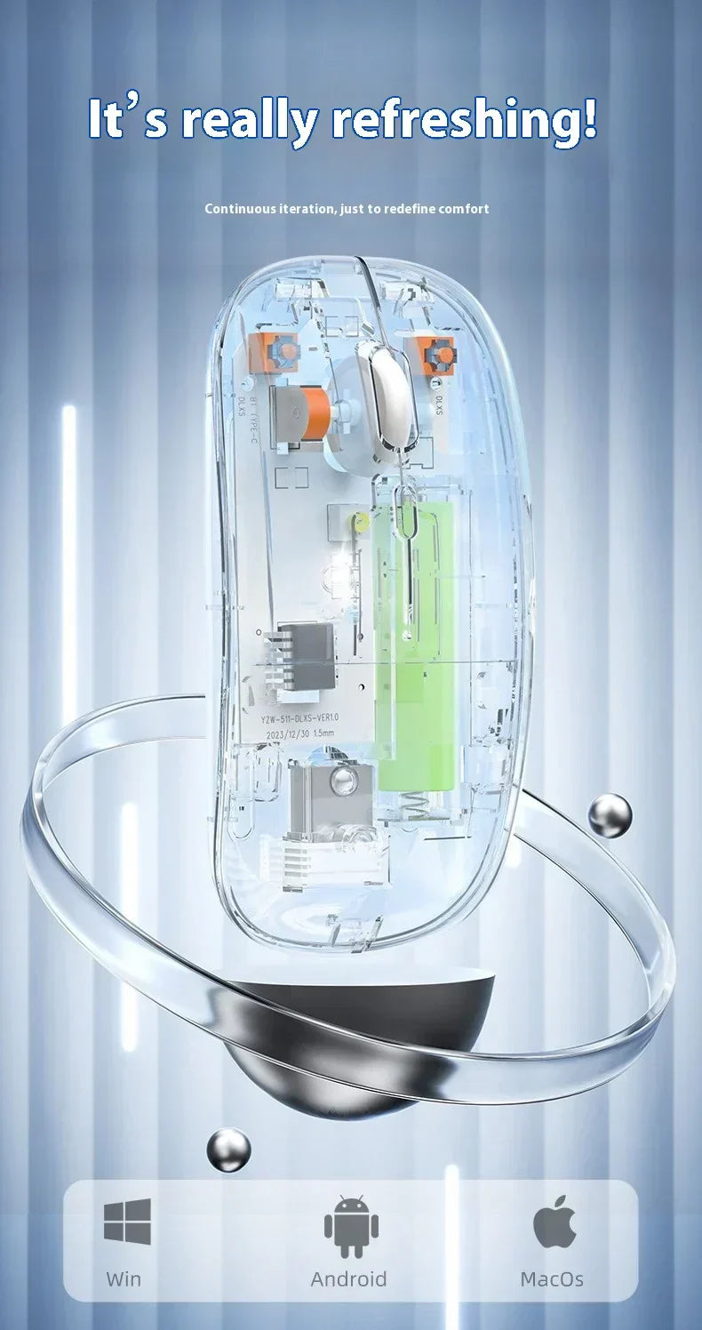 New Transparent Wireless + Bluetooth Dual-Mode Rechargeable Mouse